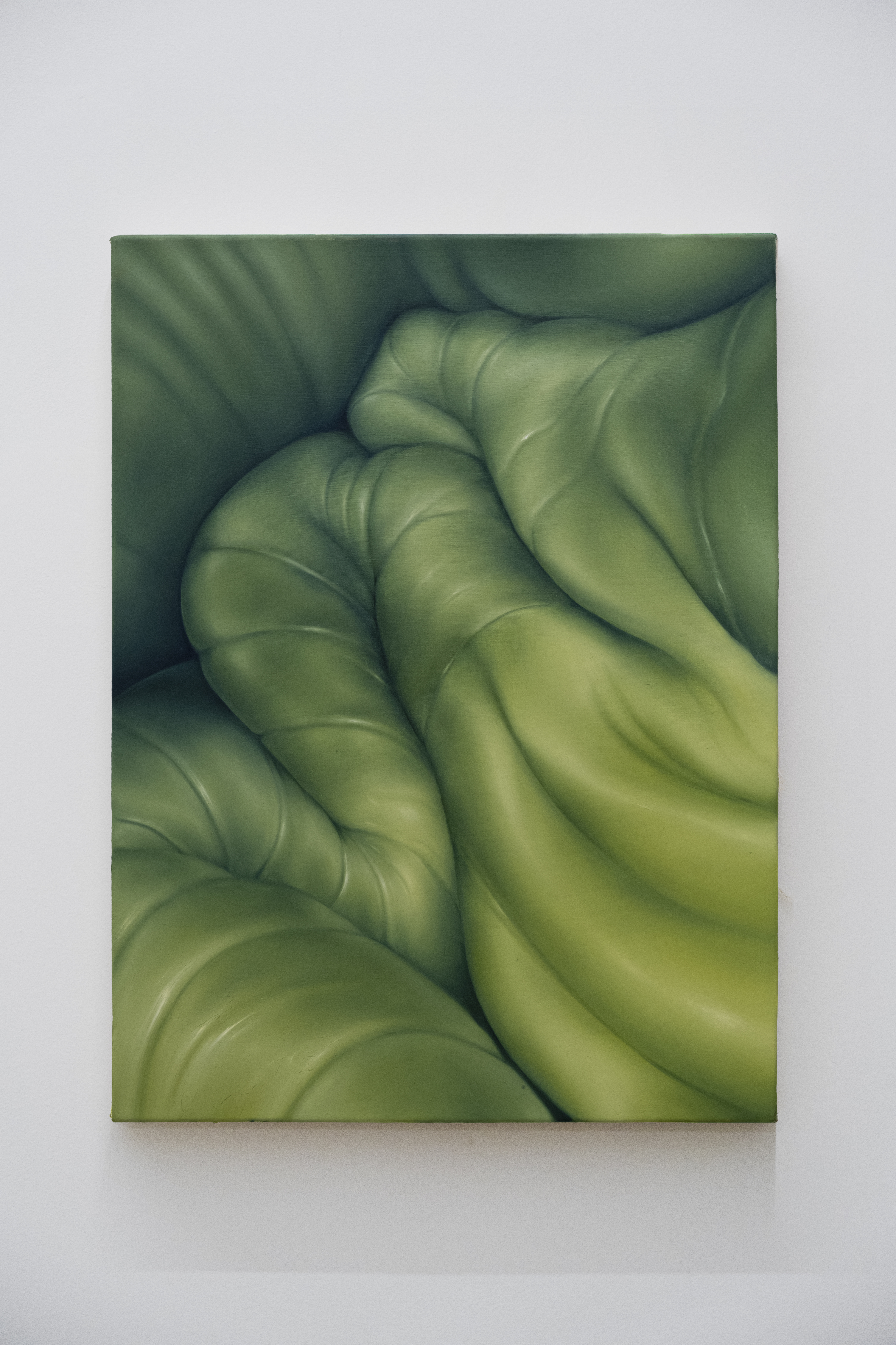 Challenged by the difficulty of understanding the subject visually, we can focus on the other sensations that the painting suggests: sometimes a sensual erotic ambiguity, but predominantly an approach that I would define as tactile. An impulse to touch these bodies, their skin and the softness of their meatiness curled in the folds. It seems to express the dampness of these hands, where only jewels give any clues to orient us.